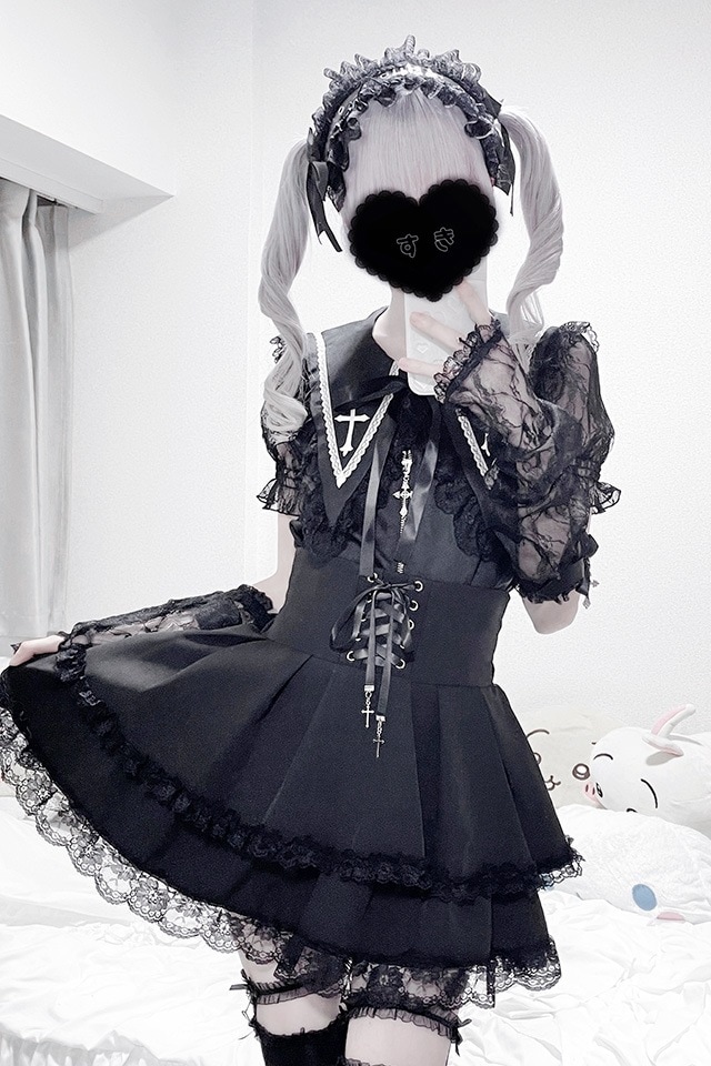 甘さと闇感を感じさせる大きめのレースセーラー襟×クロス刺繍のお馴染みの人気ポイントはそのままにバージョンアップ♪