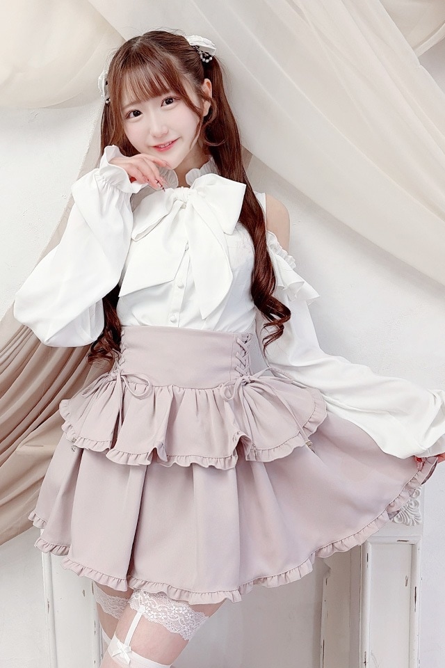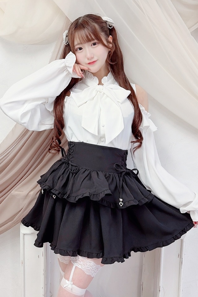 二段フリルの切り替えでふんわり広がるシルエットが可愛らしさを引き立ててくれるアイテムです♪