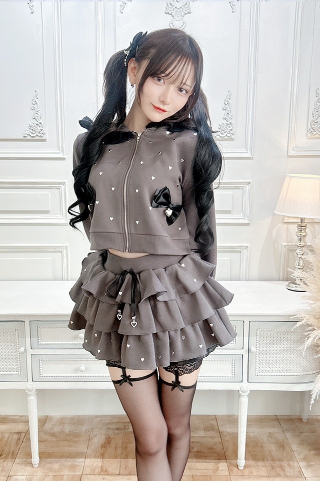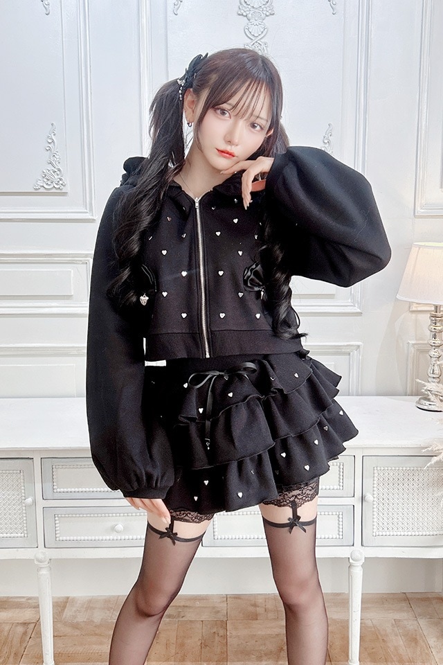 小さなシルバースタッズのハートを散りばめた、3段フリルが贅沢なショートスカパン♪