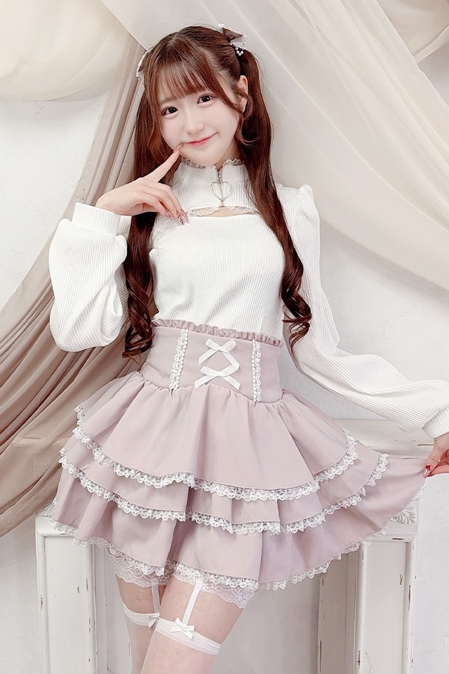 裾にもレースをたっぷり施した贅沢な3段フリルで、歩くたびふわっと広がるシルエットがコーデを一気に主役級にしてくれるアイテムです♪