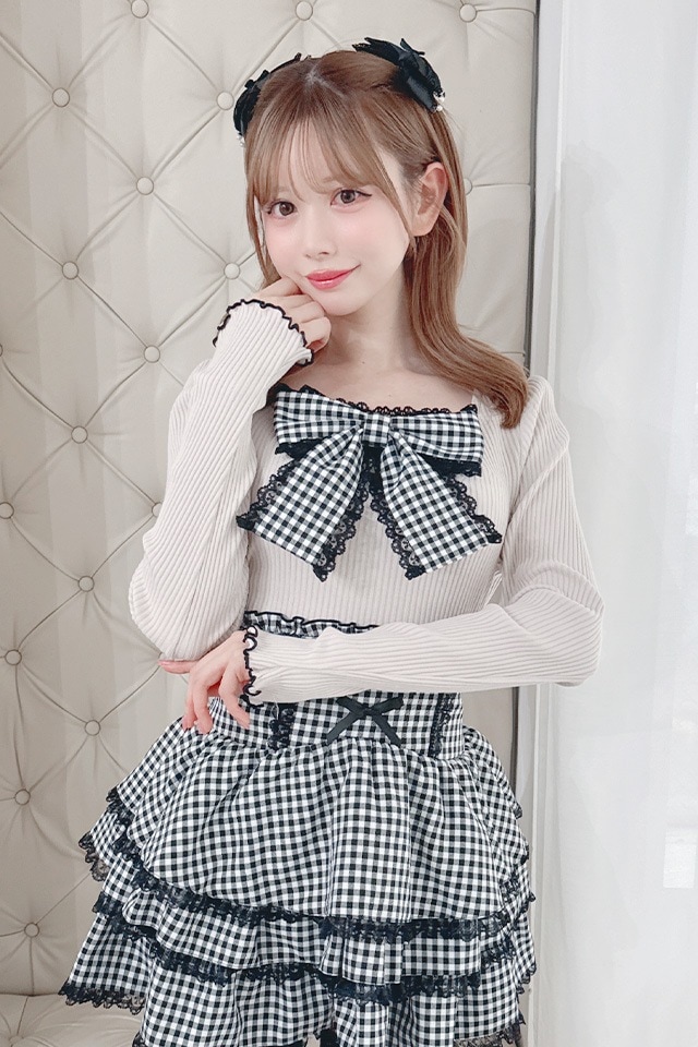 フロントの大きめギンガムチェックリボンが目を惹く主役トップス♪