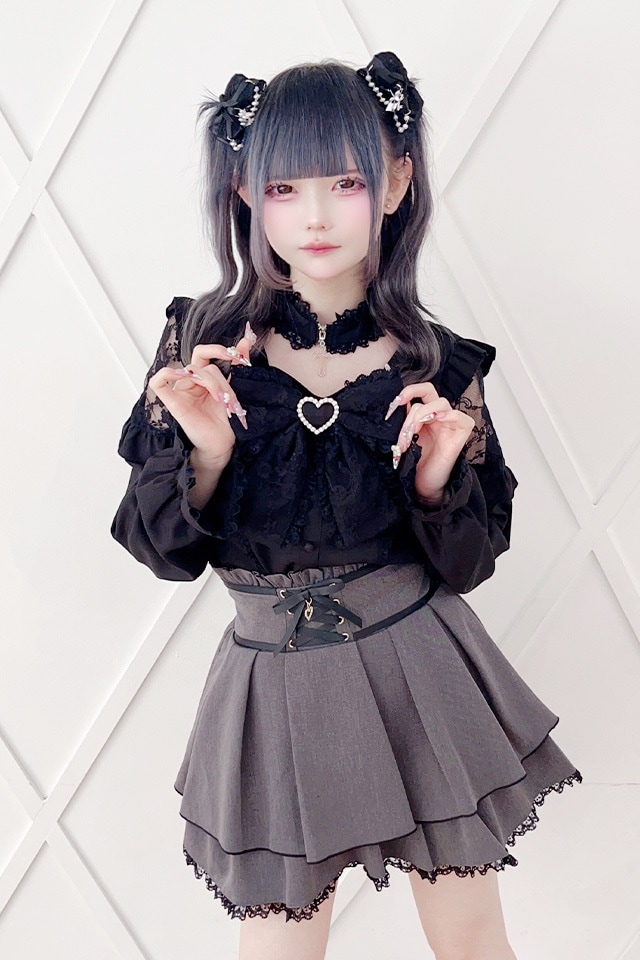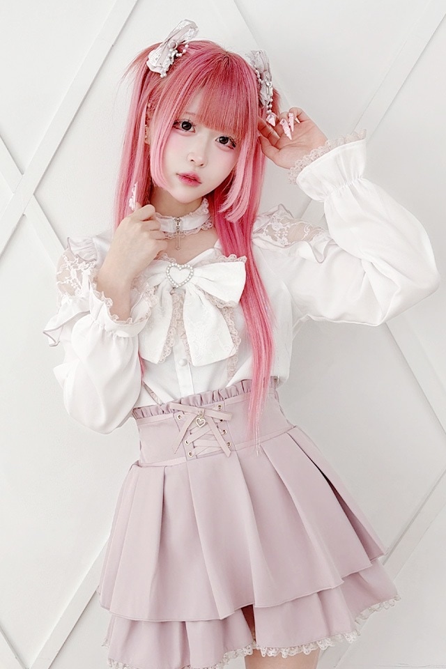 チョーカーにも胸元のリボンにもレースをふんだんに使用し、統一感のある華やかなデザイン。