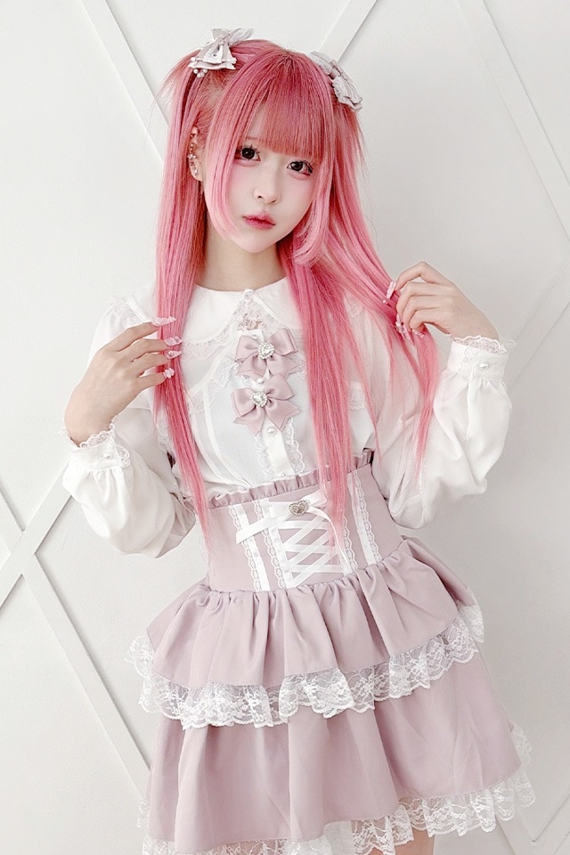 大きめの丸襟にたっぷりレースをあしらった、王道ガーリーブラウス♪